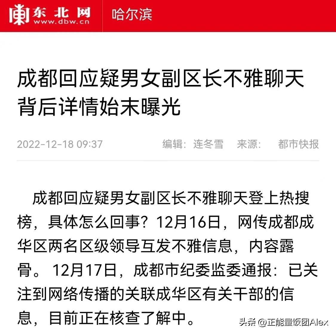 近日,网传成都市成华区两名异性副区长互发露骨信息,让外界颇有些惊讶。要知道,如果两人确系夫妻,这样信息尚可原谅。但若仅是工作同事关系,这样香艳的调情可谓是有些出格了,至少是对各自家庭的不忠和不负责任,伤害的是配偶、子女和所有关心他们的人!