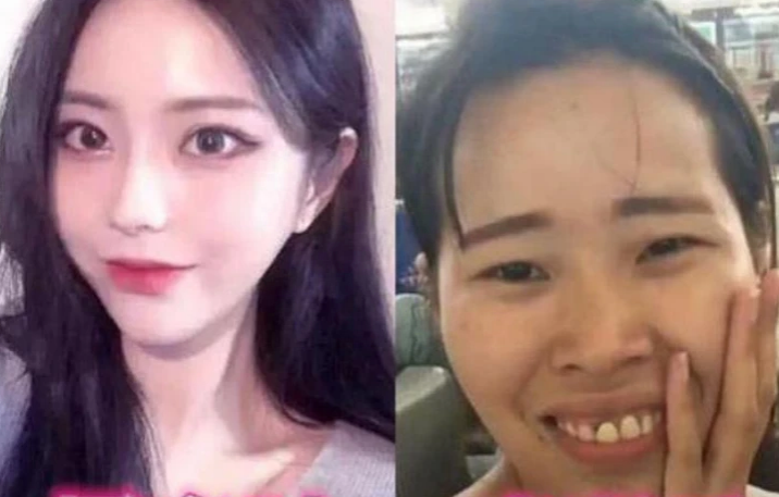 如果说前面的对比图感觉还不是那么明显,那么下面这幅对比照就可以说是大型翻车现场了。在照片里面,女生这必然是女神级别的,大大的眼睛,高挺的鼻梁,整个五官都非常立体,这样的女孩走在校园里面回头率都会很高。