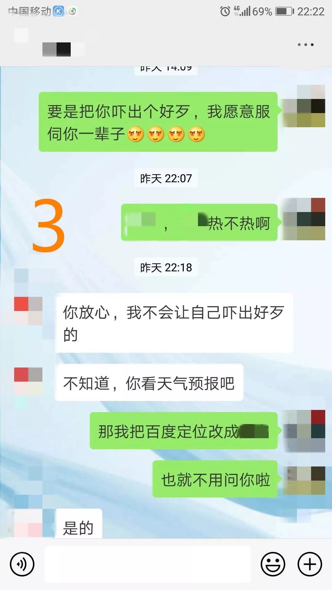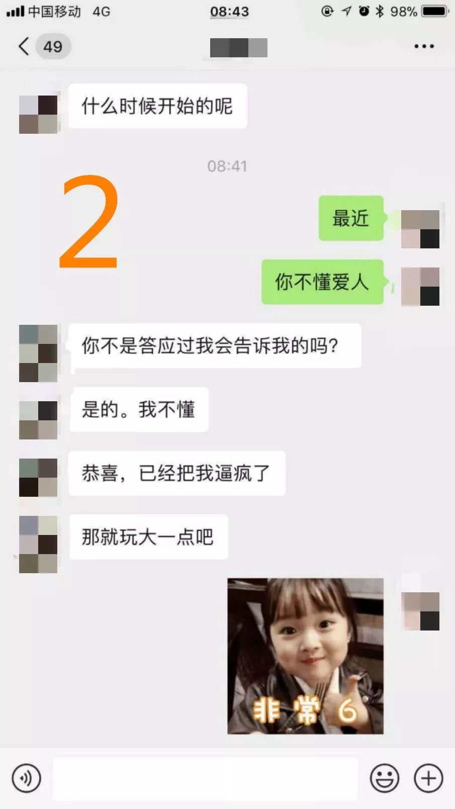 尤其是你提供的聊天记录里面,你的朋友还跟他发那种可爱的表情,千万不要再这样做。什么“棒棒的”这类的表情,是一种极大的误导。