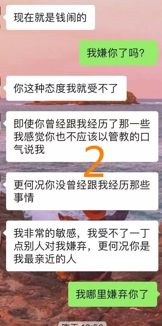 第三个方面,你说你平常讲话不掺杂情绪都能刺激到他敏感的神经。但在聊天记录里面,类似“行,我给你道歉”这样的话语是有反复出现的。